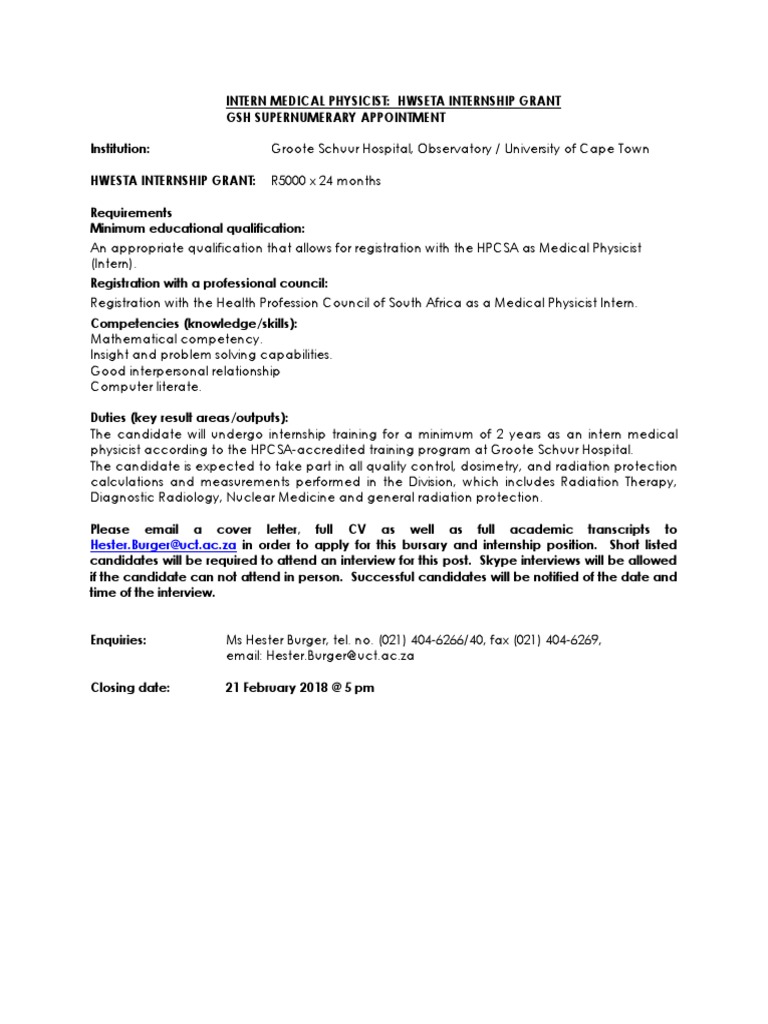 When writing a medical physicist cover letter remember to present your relevant work history and skills according to the job you are applying for.